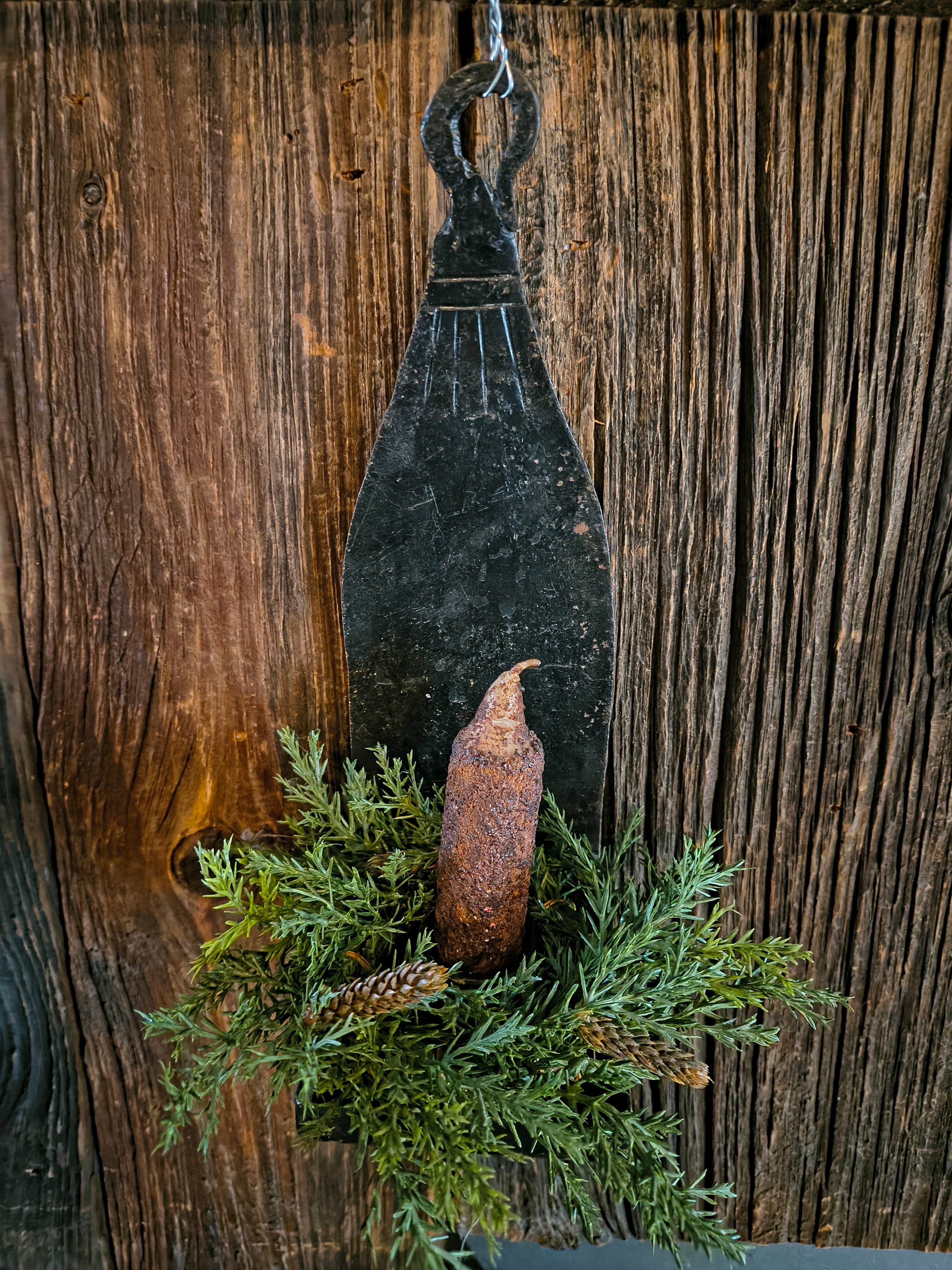 Antique Metal Candle Holder w/ Candle Antique Metal Candle Holder w/ Candle